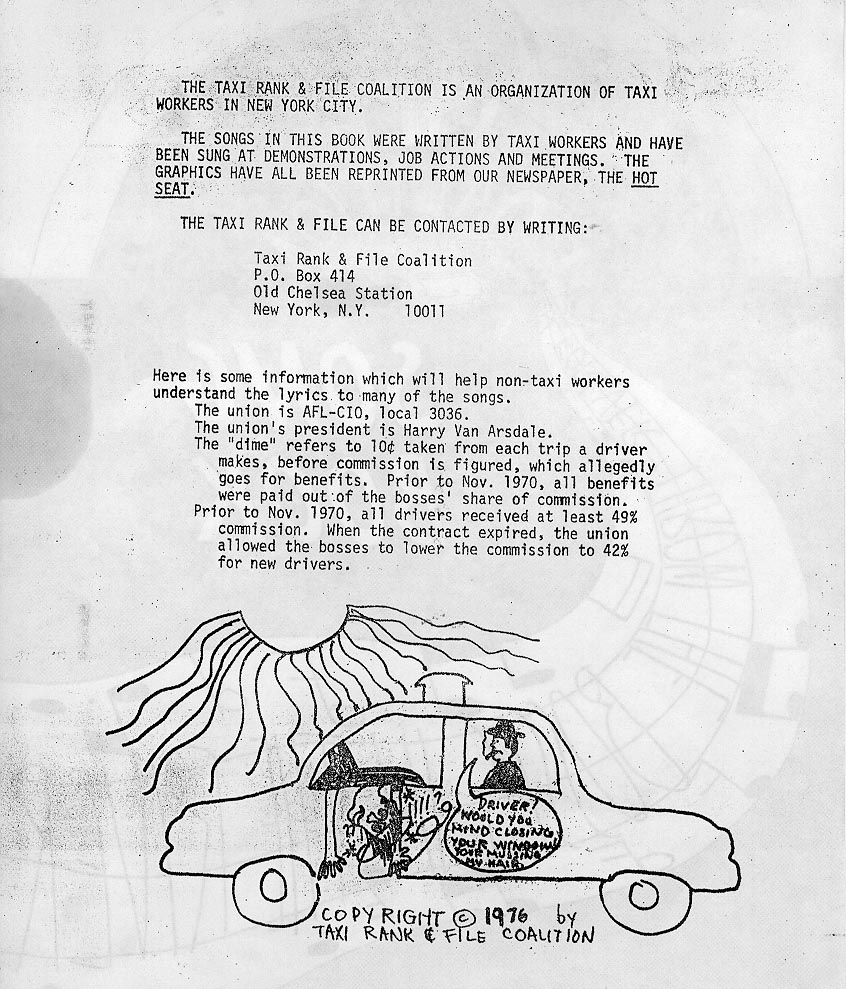 the Taxi Rank-and-File Coalition Song Book